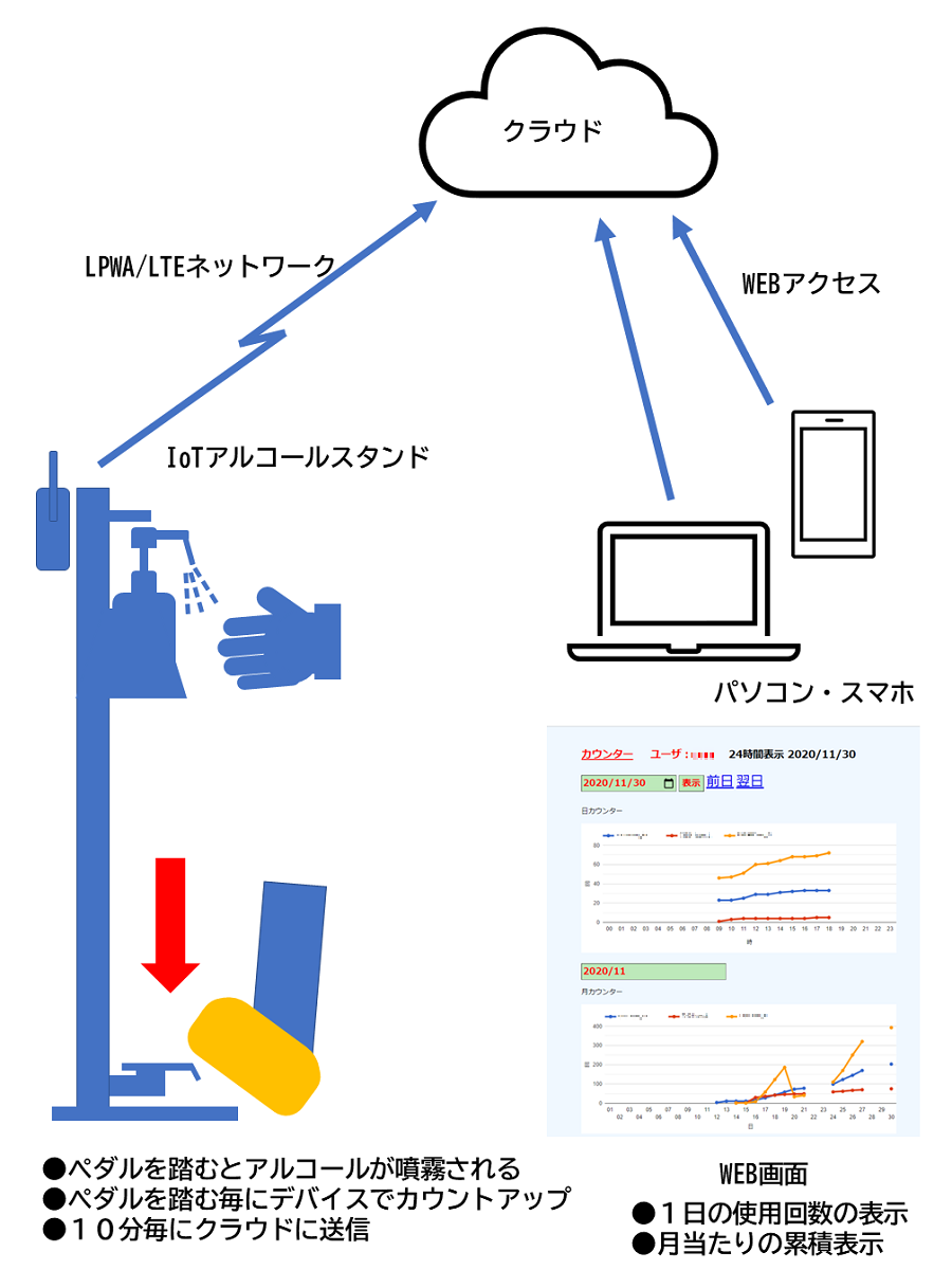 - 利用状況に合わせた、アルコール噴霧スタンドの設置台数増減の参考データを得ることができる。